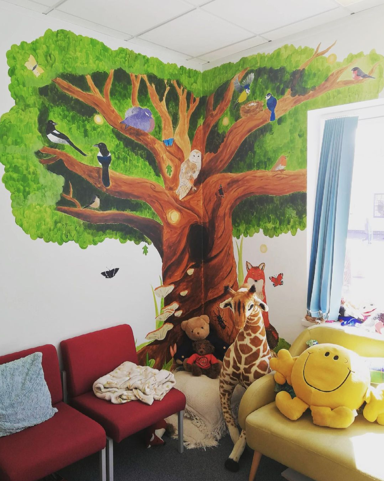 In 2020 I was commissioned to design and paint two woodland murals to bring colour and life to the walls of Wonersh & Shamley Green CofE School. The murals were to be painted in the ‘Nest’, a small room for children with extra learning needs to have 1 to 1 time, and the library, to create a calming and safe space for the children to enjoy learning in.